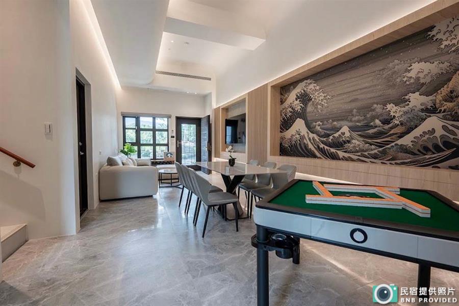 4~16人可包棟、全新落成寬敞聚會空間、廚房使用、戲水池、烤肉場地電動麻將、兒童遊戲區、停車便利時尚簡約文旅風格、親友聚會最超值首...